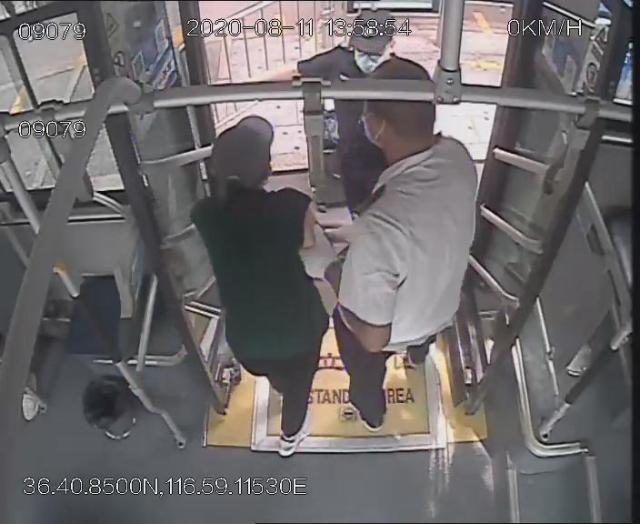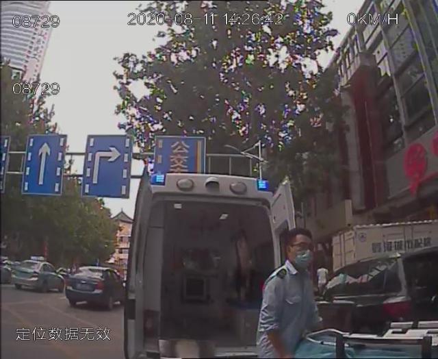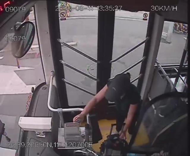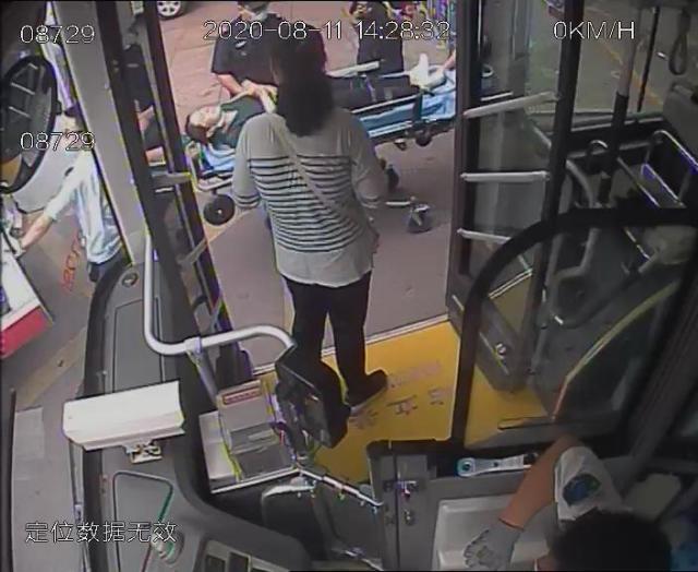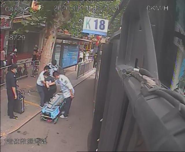 监控显示,8月11日11:36分B18路驾驶员张英奎驾车行驶至千佛山站点时,上来一位20多岁的女乘客。上车后,该女乘客弯着腰,艰难地拖拽着行李箱落座。11:53分,公交车停靠火车站站点,车上的一位热心乘客发现女乘客捂着肚子,表情痛苦,于是找公交驾驶员帮忙。