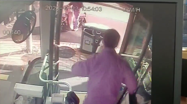 老人瘫倒在公交站台上 市民、公交驾驶员联手救助
