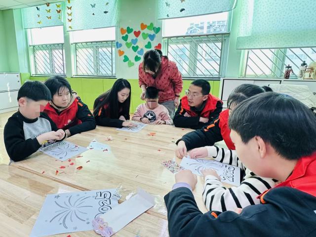 在老师和工作人员的带领下,志愿者们和孩子们共同剪窗花、做游戏,在轻松愉快的活动中,拉近彼此间的距离。孩子们与志愿者之间的交流逐渐增多,脸上洋溢着灿烂的笑容,在志愿者的鼓励下,孩子们尽情地发挥着他们的想象力,描绘出自己内心深处的小小世界。