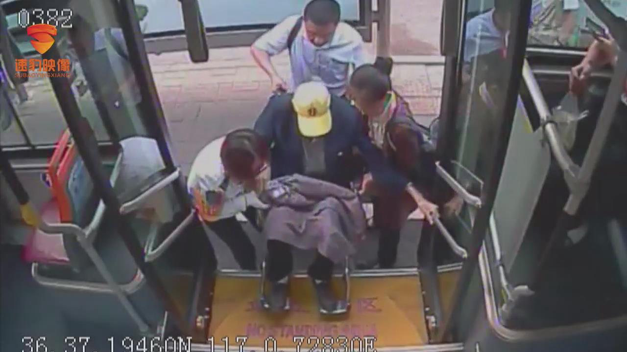 9月9日上午,一名女乘客推着一位坐轮椅的老人乘坐公交车。因上车困难,好心司机和热心乘客伸出援手,合力将老人抬上公交车。这暖心的一幕发生在济南公交152路车上…