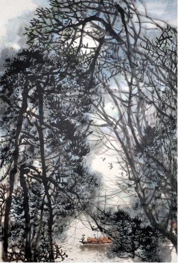 吴传麟先生的画感觉特别清新,但是传统功力又特别深厚。他的画特别讲“神韵”,特别有一种韵味。他有一幅山水画《松风泉韵》,另一幅花鸟画《芳韵》,整幅作品就是突出一个“韵”字。就他个人的追求来讲,他有各种各样的探索。可染先生也是,他最重要的一个追求就是讲韵味,讲“神韵”。我看吴先生的画,也是特别有这种追求,这点也跟可染先生有不谋而合的地方。