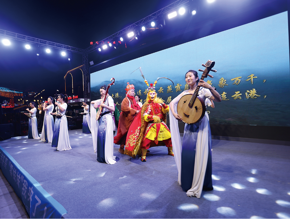 活动伊始,台上是循环播放的两地文旅宣传片,台下是西游师徒四人与现场观众的趣味互动,连云港的神奇浪漫与永州的千年韵味巧妙交融,带起一片烟火气。“昨天一下高铁打滴滴,说起我来自永州,司机大哥立刻热情邀约免费接送。”来自永州零陵区的主持人隆婷在活动开始前接受采访说。她将这一幕对话敏锐地捕捉下来,视频一经发布,就收获30多万人次播放量,后台满是港城人民主动接待的私信,“‘连哥哥’的宠爱我们感受到了!”隆婷开心地说。