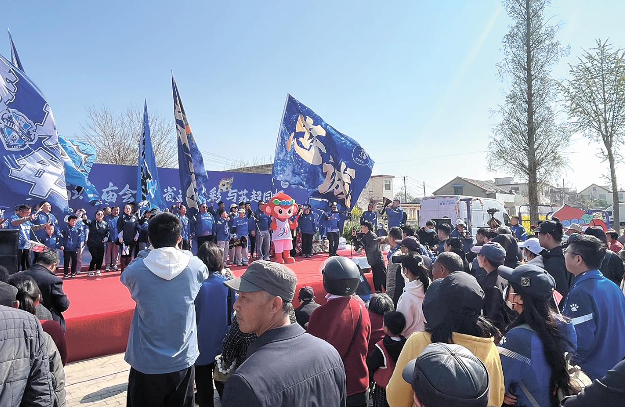 “战斗!连云港!战斗!连云港!”4月4日上午,海州区南城清明庙会主会场口号嘹亮,苏超球迷会拉歌、风采展示活动火热开场。球迷们高举助威手牌、齐声呐喊,现场游客纷纷驻足呼应、跟着节奏拍手应和,拉开“古城踏春逐梦 苏超省运同行”南城庙会体育嘉年华的帷幕。