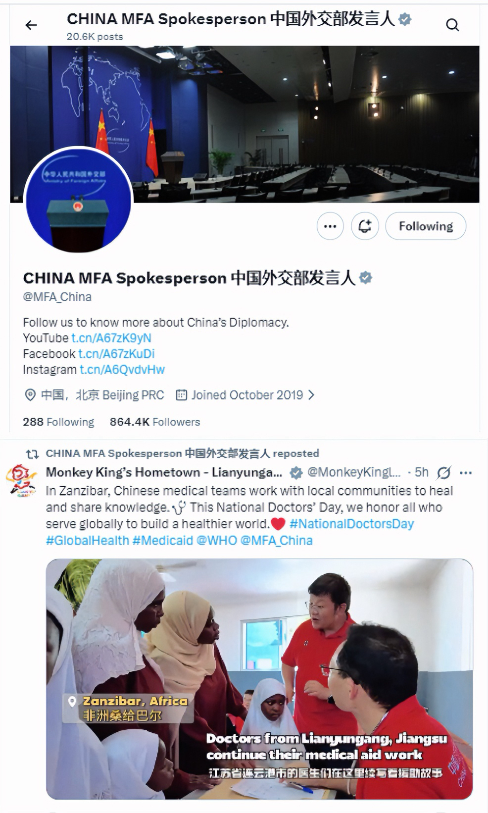 连云港援非医疗队工作短视频获外交部点赞
