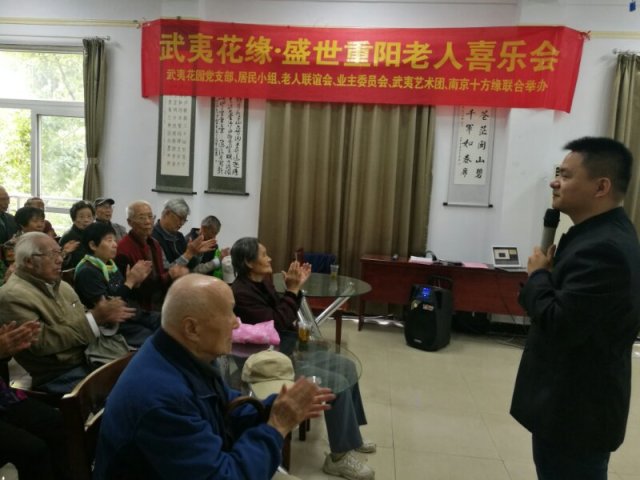 重阳节临近,武夷花园党支部、居民小组、老人联谊会、业主委员会、武夷艺术团、南京十方缘联合举办“武夷花缘 盛世重阳老人喜乐会”,邀请社区老人提前感受到浓浓的节日氛围 。